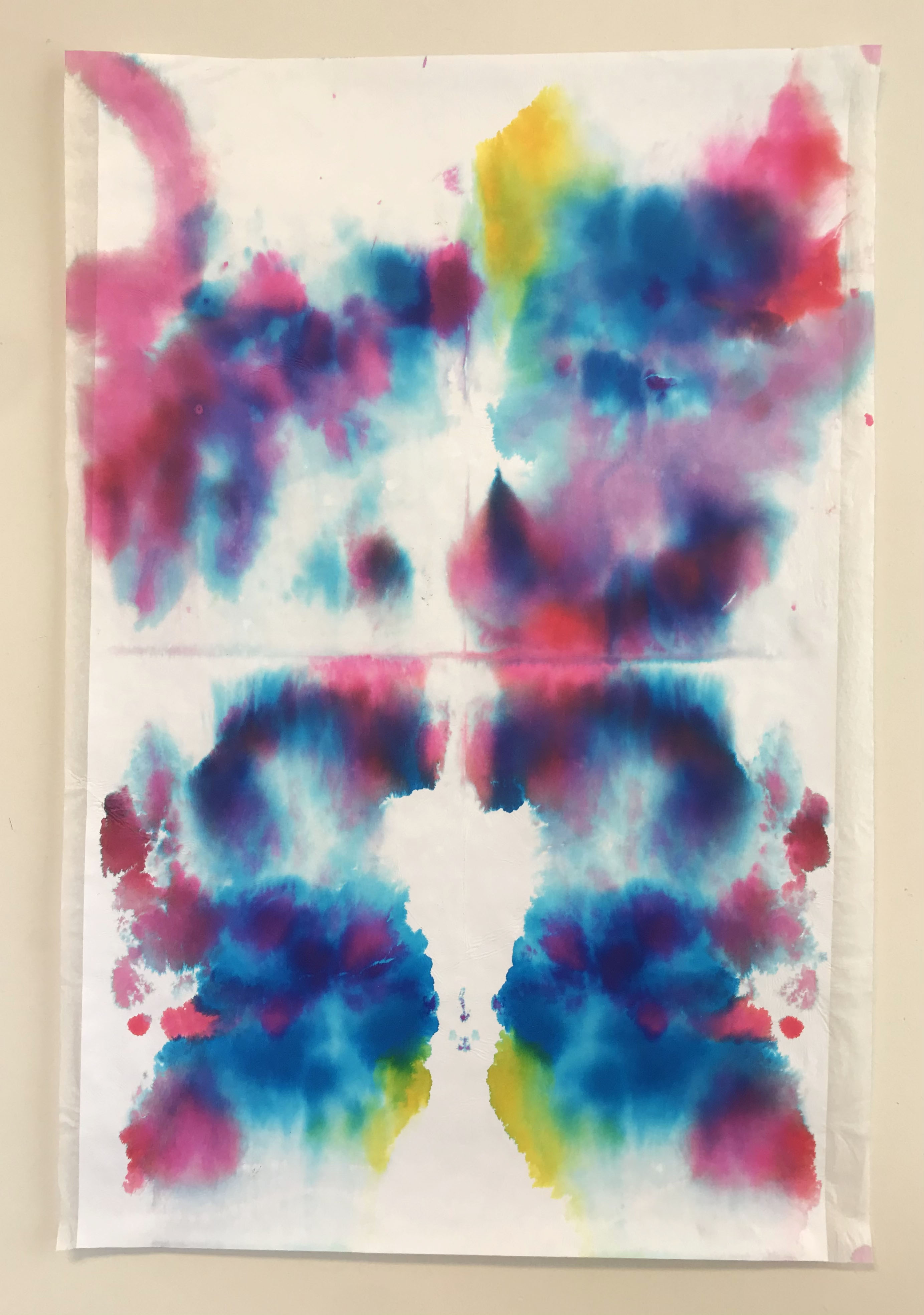 PROCESS: The “Ghost Layers” are multiple series of grid works on paper — layers of paintings, one made on top of another, so the ink or dye from the original bleeds into the layers underneath. Each layer is unique while inheriting aspects of the original layer.